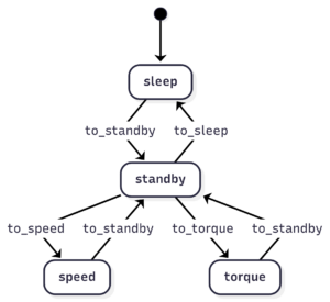 By using the event driven decorators like @rbs.state.on_enter you can implement the desired changes in timers, message sending or singnal values. Convert your defined logic into a mermaind sting to get a Diagram.