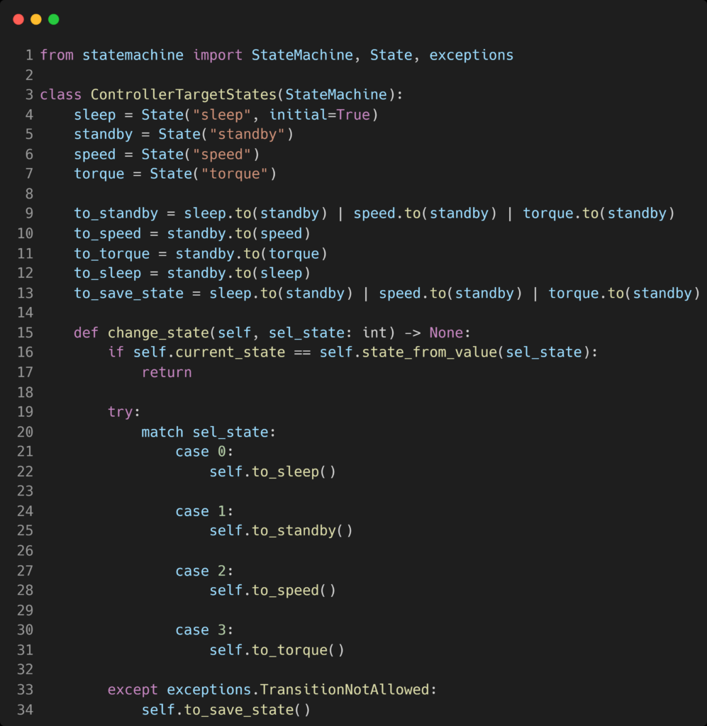 Use the python statemachine package do describe your applications logic.
